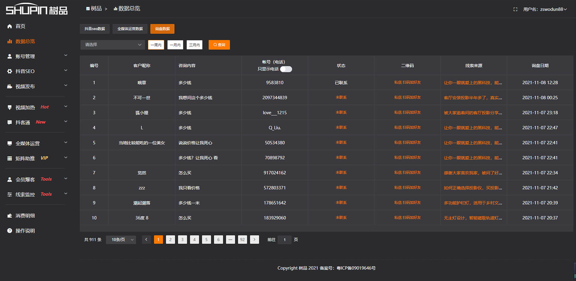 詢盤數(shù)據(jù)報(bào)表